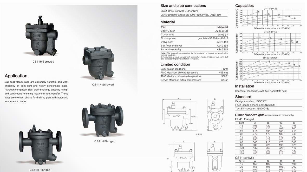 5、敞口形的浮子抗水擊,吊桶上設有溢出排氣孔,可有效防止蒸汽汽鎖,空氣氣堵現(xiàn)象。(非凝結(jié)性的高溫空氣也可排除)