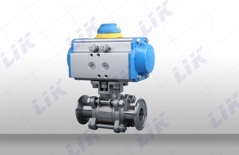 進口氣動衛生級球閥,皆經過精密的檢驗流程和嚴格的品質管理。加工過程中,流道經過精密拋光和滅菌處理。其結構是由三段式閥體組成,由外部四只較長螺栓從兩端夾住中間 閥體與閥球而成。密封圈為全封閉式緊緊包裹住閥球,無空間和死角。兩端為卡箍連接方便拆卸、清洗、維修。工作原理也是通過執行器90度的旋轉來帶動球體的旋轉以達到介質的流通與阻斷