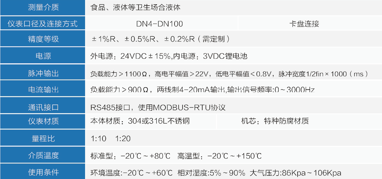 進口衛生級渦輪流量計技術參數
