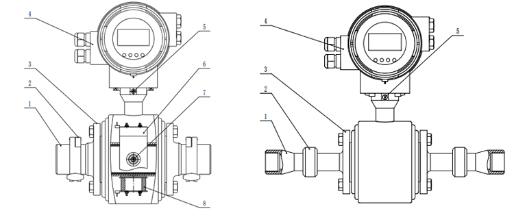 4.轉換器 5.接地螺釘 6.磁路板 7.電極 8 勵磁線圈