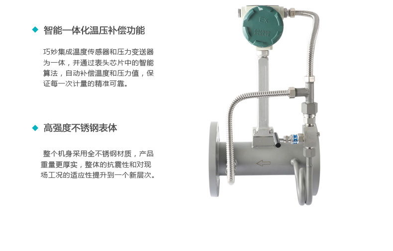 進口渦街流量計主要用于工業管道介質流體的流量測量,如氣體、液體、蒸氣等多種介質。其特點是壓力損失小,量程范圍大,精度高,在測量工況體積流量時幾乎不受流體密度、壓力、溫度、粘度等參數的影響。無可動機械零件,因此可靠性高,維護量小。儀表參數能長期穩定。渦街流量計采用壓電應力式傳感器,可靠性高,可在-50℃~+350℃的工作溫度范圍內工作。有模擬標準信號,也有數字脈沖信號輸出,容易與計算機等數字系統配套使用,是一種比較先進、理想的流量儀表