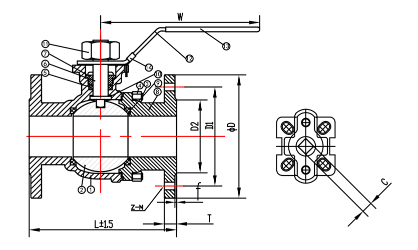 1扭矩設計:平臺法蘭球閥采用彈性閥座與球芯彈性接觸密封,提供均勻的旋轉扭矩,手感潤滑,開啟無抱死。閥座切邊設計避免了高壓差狀態下球口嵌入閥座的問題