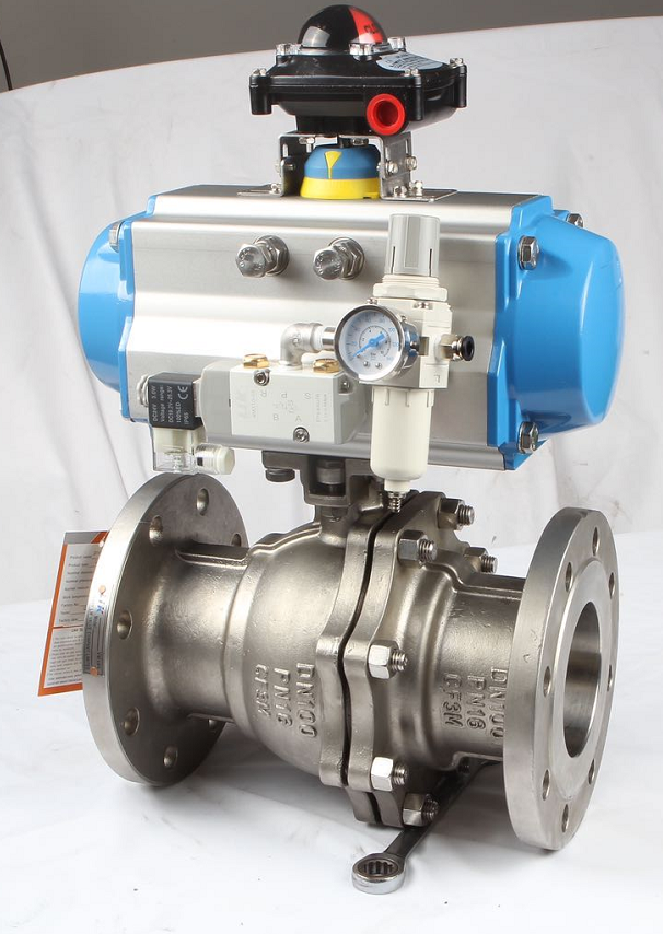 7.安裝調試開關型氣動球閥時,先用手動裝置進行(電磁閥上的手動按鈕)調試、動作正常后再通電調試。