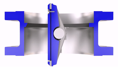 蝶板轉(zhuǎn)動至15° ~25°時,蝶板密封面完全脫離閥座密封面;
